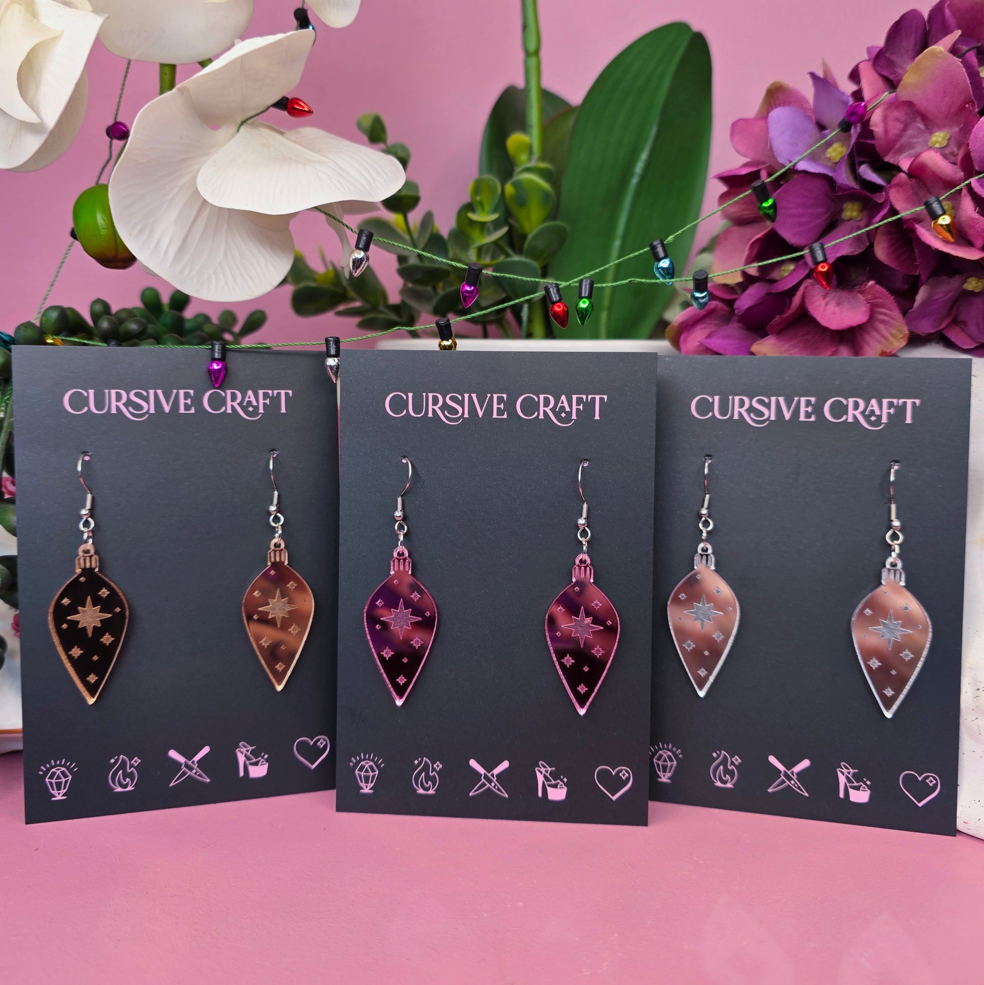 Give your festive look a touch of retro glamour with Dainty Vintage Ornaments. Classic bauble-shaped acrylic earrings with delicate star details and a glossy mirror finish. They’re lightweight, elegant, and bring that dreamy old-school Christmas vibe without being old-school boring.