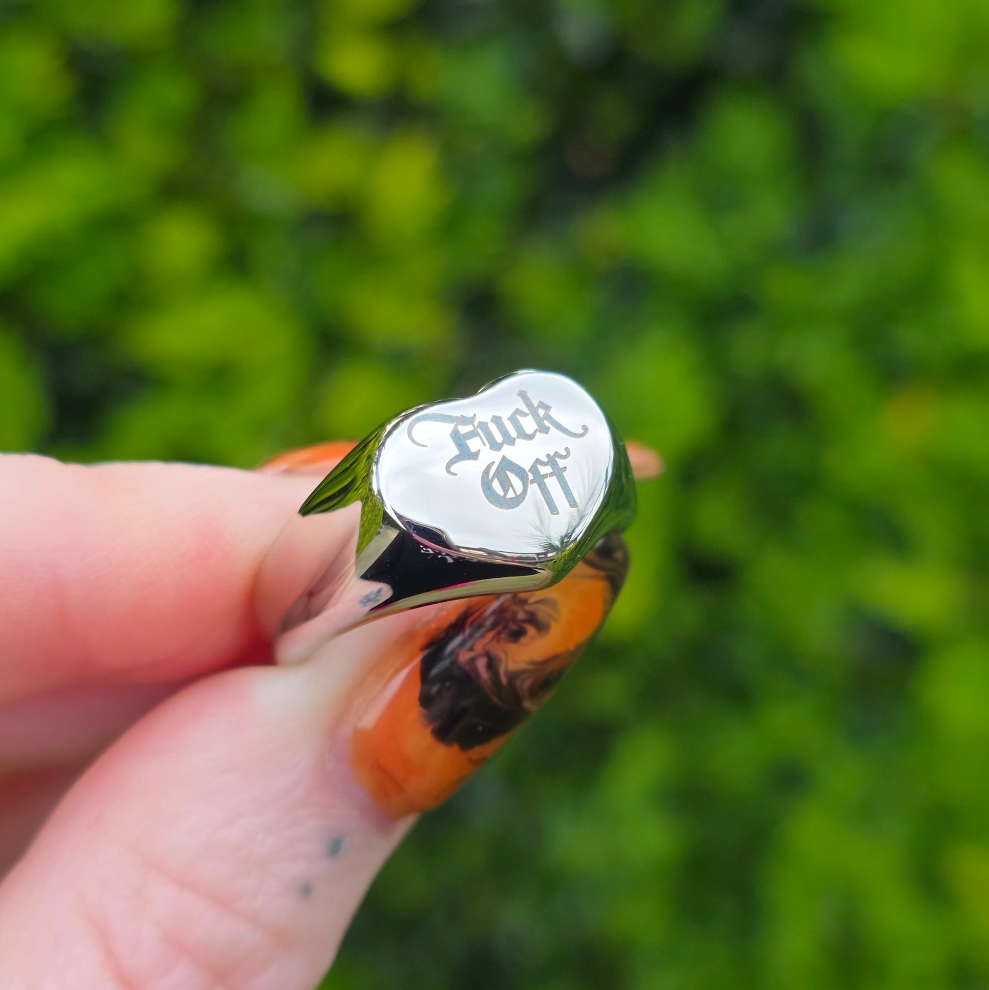Fuck Off Heart Signet Ring - Silver