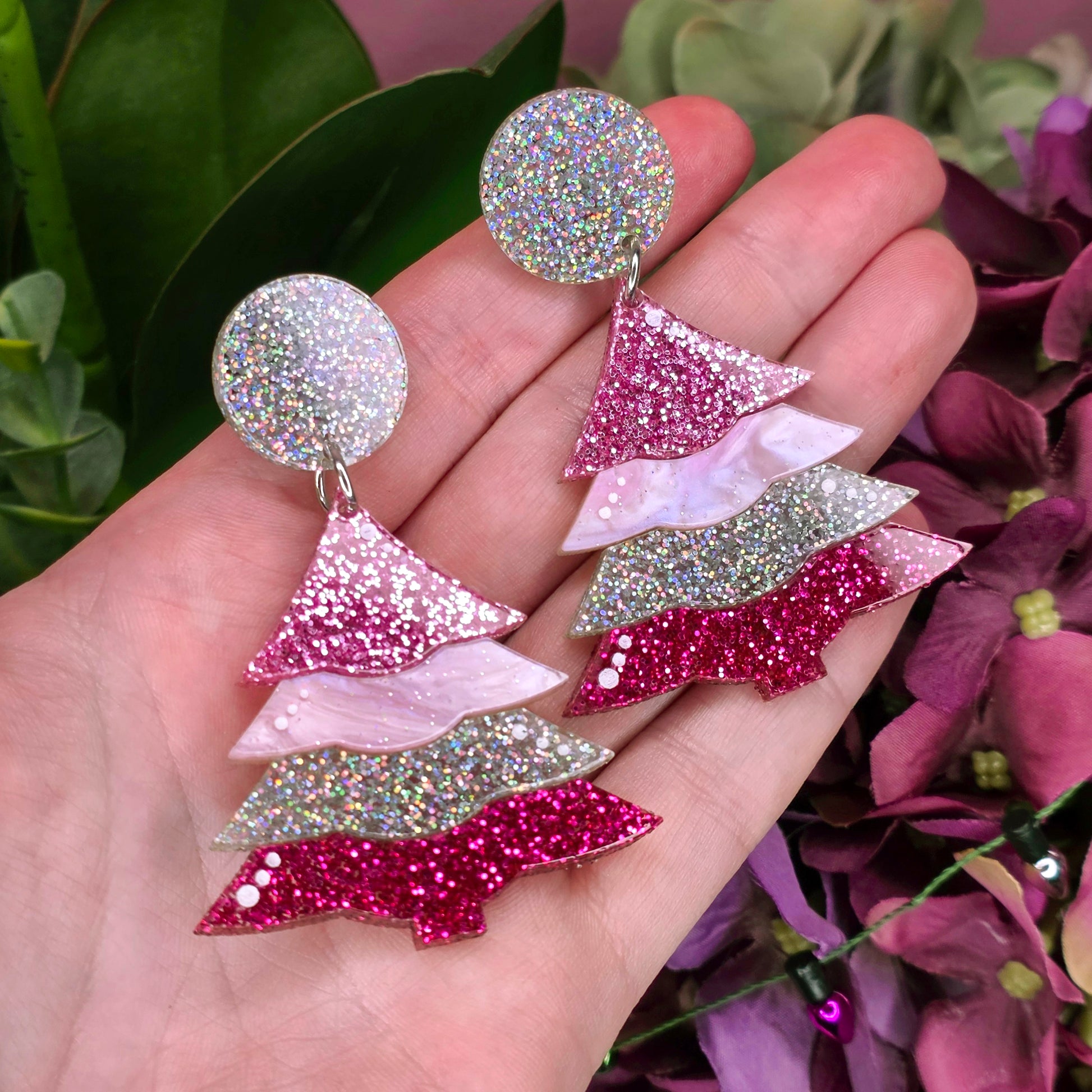 Make your Christmas look loud, sparkly, and unapologetically pink with Pinkmas Trees. Layered acrylic statement earrings stacked with glitter, shimmer, and full festive attitude. These babes feature multiple textured tiers, topped with a chunky glitter stud to really set the tree topper vibe.